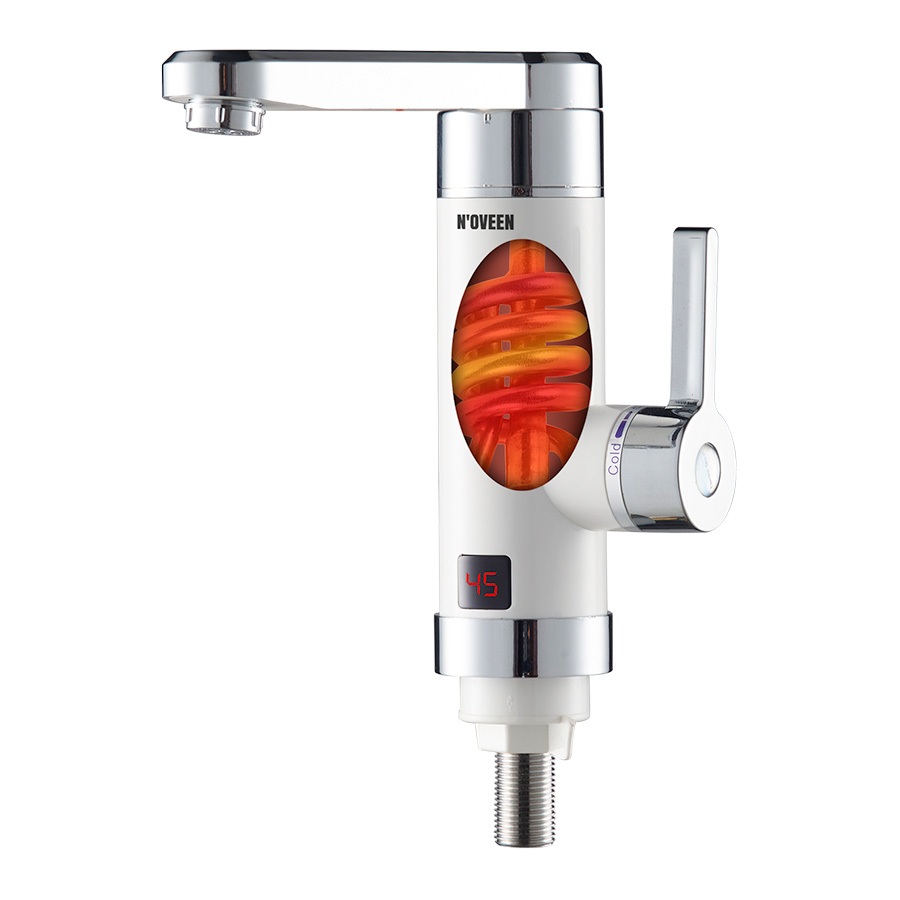 Lauapealne paigaldus. Moodne välimus. Kuumutab vett kuni 60°C-ni. LED-ekraan näitab temperatuuri. Veevool 2–2,5 l/min. Energiaklass A. Ohutu kasutada – IPX4 kaitse. Ülekuumenemiskaitse ebapiisava veesurve korral.