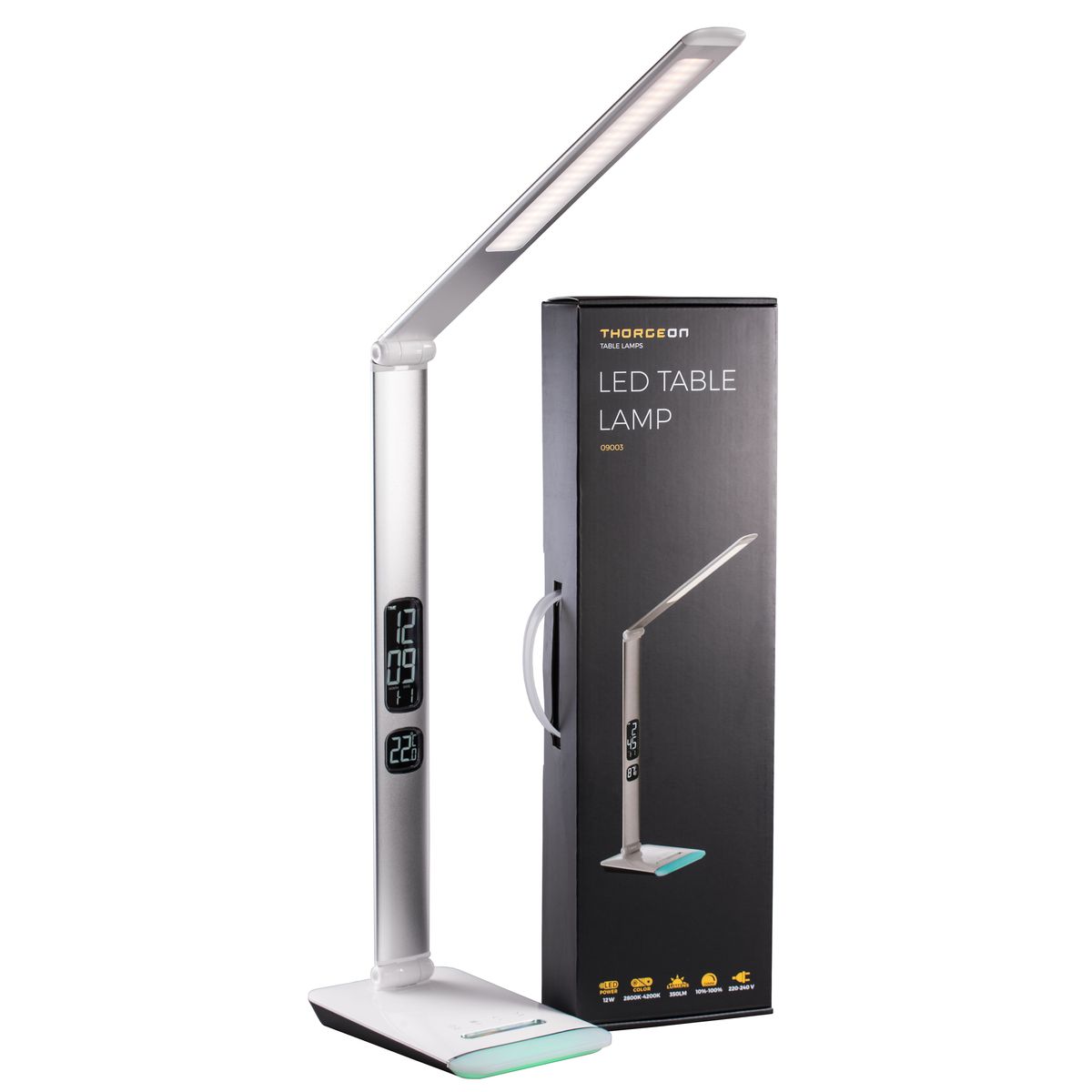Vastupidavast palstikust disainvalgusti, valgusvärvust saab valida 5 astmelise dimmeri abil vastavalt vajadusele sooja (2800K), külma (6000K) või loomuliku (4000K) valguse vahel. Lambi eesküljel asetseval LED ekraanil kuvatakse kuupäeva, kellaaega ja õhutemperatuuri.