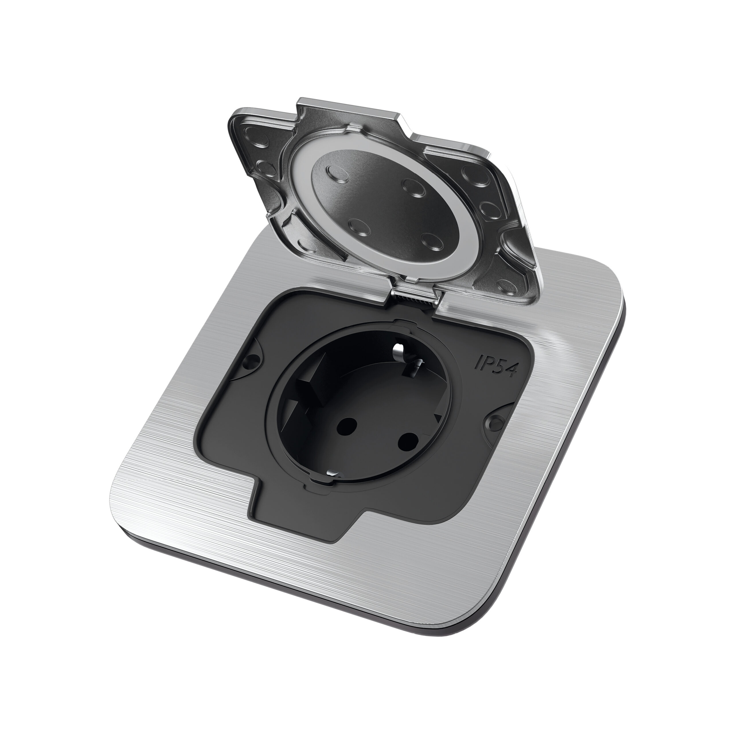 See moodne harjatud alumiiniumist kattega põrandapistikupesa pakub usaldusväärset kaitset tolmu ja pritsmevee eest (IP54). See sobib ideaalselt terrassidele, rõdudele, äripindadele ja moodsatele välistingimustele, kus nii funktsionaalsus kui ka disain on olulised. Paigaldatakse otse põrandasse ja suletuna tagab see tasase ja ohutu pinna.