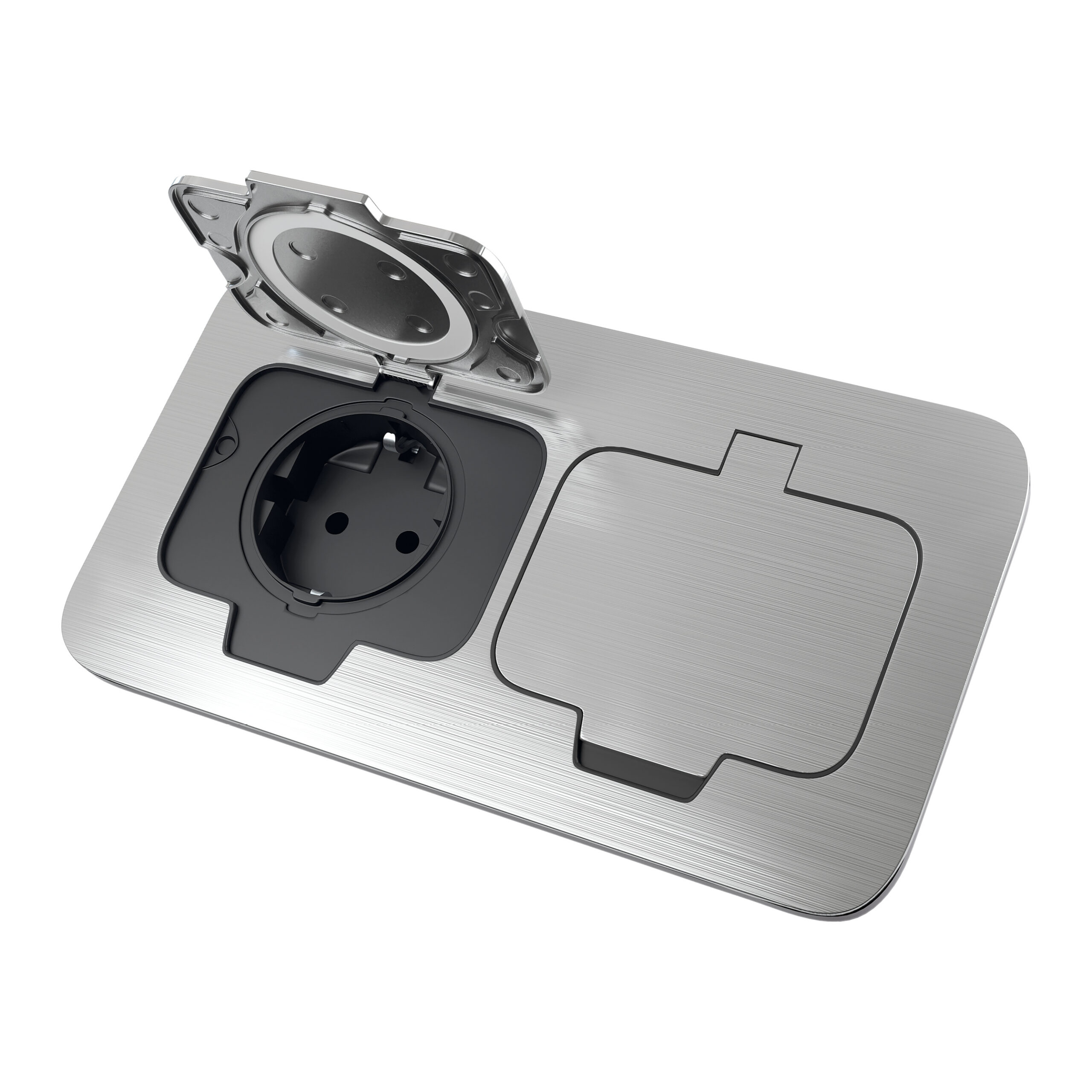 See moodne harjatud alumiiniumist kattega põrandapistikupesa pakub usaldusväärset kaitset tolmu ja pritsmevee eest (IP54). See sobib ideaalselt terrassidele, rõdudele, äripindadele ja moodsatele välistingimustele, kus nii funktsionaalsus kui ka disain on olulised. Paigaldatakse otse põrandasse ja suletuna tagab see tasase ja ohutu pinna.